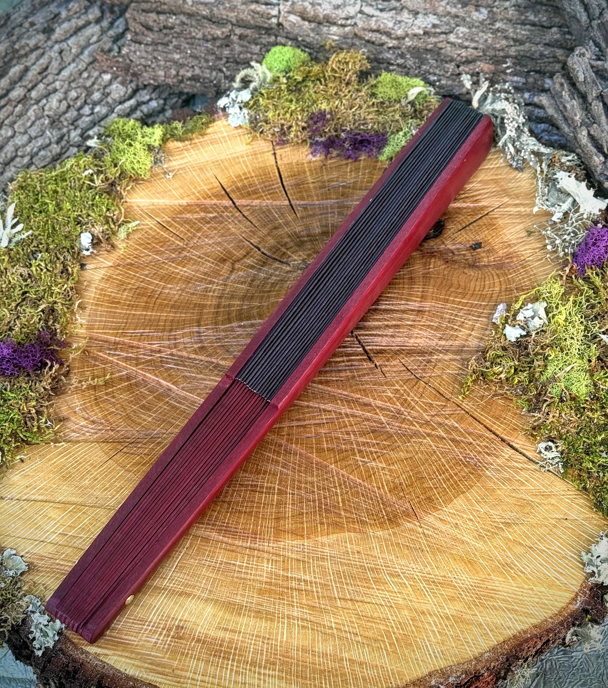 XL fabric and wood fan- sturdy, durable, and efficient.  Excellent for keeping cool, or flirtatiously hiding behind.