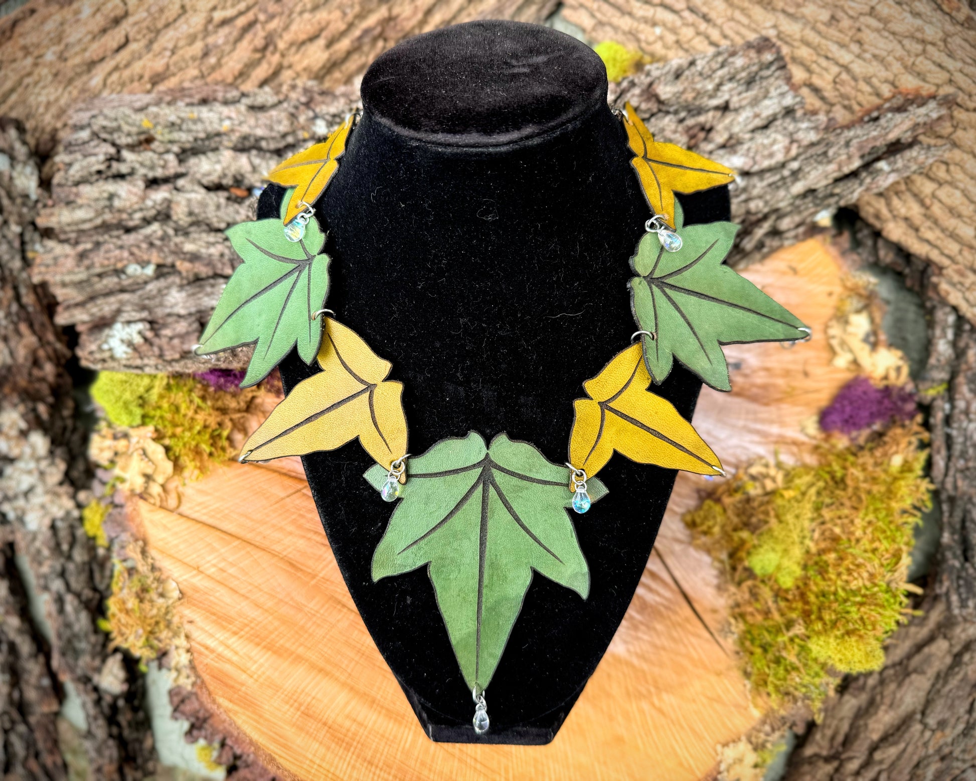 Ivy Leaf and Glass Droplet Necklace