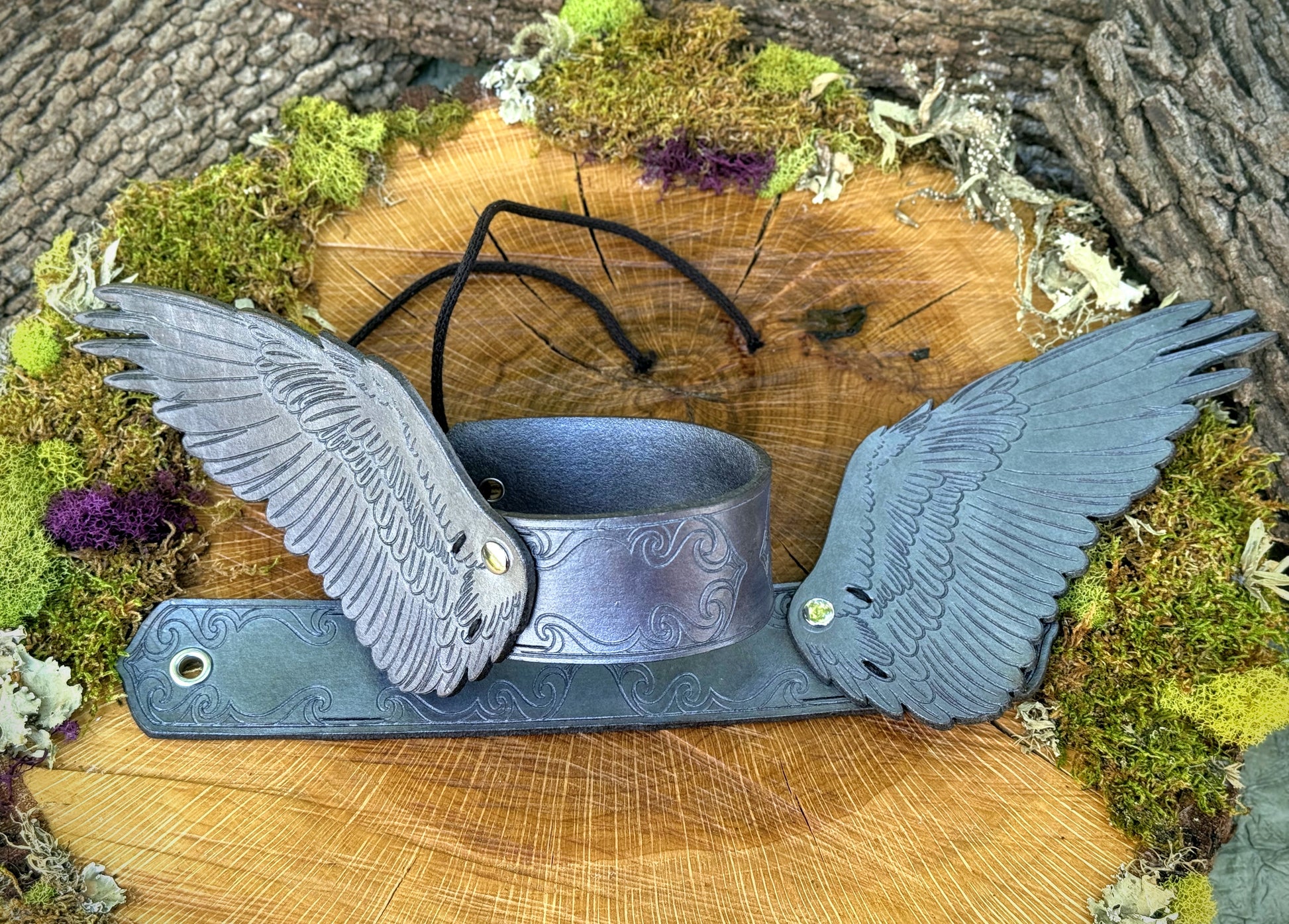 Please note that leather is an organic material with variations in thickness, resilience, stretch, and general quality. While I try to be selective of what gets used, these factors can affect the way the dye absorbs, the flexibility, and make scars visible that otherwise weren’t. We believe it’s beautiful to have things others might view as “imperfections”, and find it dishonorable to discard the hide that a cow provided for just cosmetic flaws. With this, there are likely to be slight variations from what is shown in the photo within range of my discretion as the artist, and will not validate returns or exchanges.